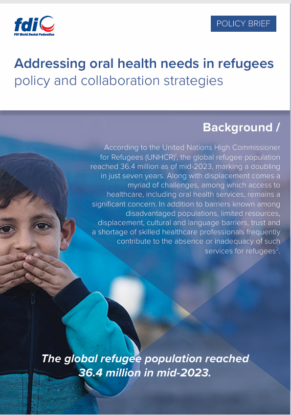 FDI represents more than one million dentists worldwide. We work with our members to raise awareness about the importance of good oral health and its vital role in securing overall health and well-being. We are dedicated to safeguarding the health of people worldwide through the improved prevention, treatment, and control of oral diseases. The linkages between oral health and NCDs, including shared risk factors, underscore the need for a common response – one that FDI is well positioned to lead. FDI and its members are poised to accelerate progress toward Vision 2030: Delivering Optimal Oral Health for All and build on the momentum underway to safeguard the health of people worldwide.