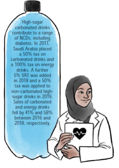 Transforming health care is an important aspect of The Kingdom of Saudi Arabia’s ambitious Vision 2030 strategy. Saudi Arabia is therefore taking decisive action to combat noncommunicable diseases (NCDs), which are responsible for approximately 78% of all deaths in the country. Imposing taxes, adopting legislation and using new technology have all been essential tools for mitigating NCDs both before and during the COVID-19 pandemic.