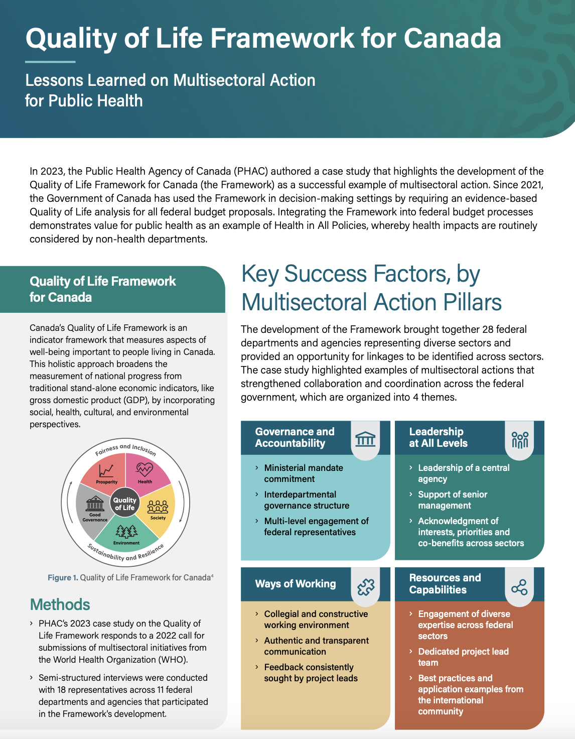“The focus on quality of life and wellbeing and the formal leadership through ministerial mandate letters gave the initiative a strong boost and a clear multisectoral and interdisciplinary direction from the very beginning”, said Nancy Gehlen, an analyst in the Public Health Agency of Canada’s (PHAC) Health Equity Policy Division.